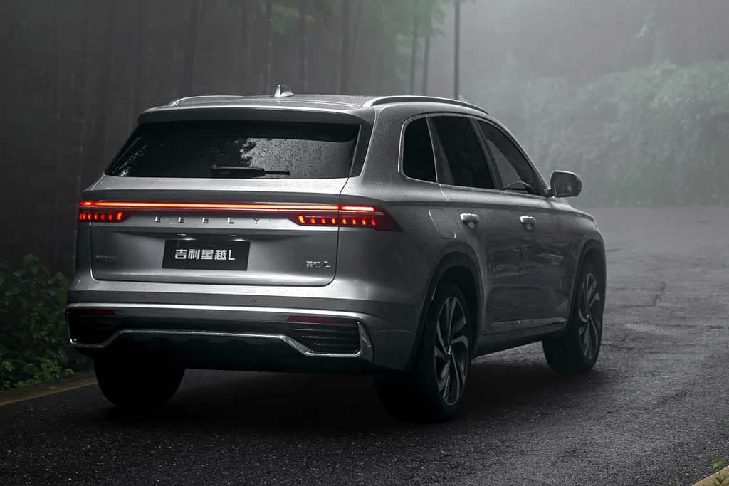 Одновременно заметными элементами экстерьера Джили Манжеро являются сдвоенные горизонтали ходовых и габаритных огней. Линзованные LED-фары китайского джипа получили систему интеллектуального управления светом. В передний бампер Monjaro встроены противотуманные фары.